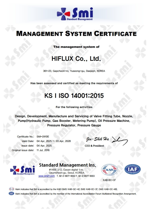 认证范围 : 阀、接头、管道、喷管、泵(水压泵、气体、增压泵、定量泵)、液压机、压力调整器、压力表的设计、开发及制造
